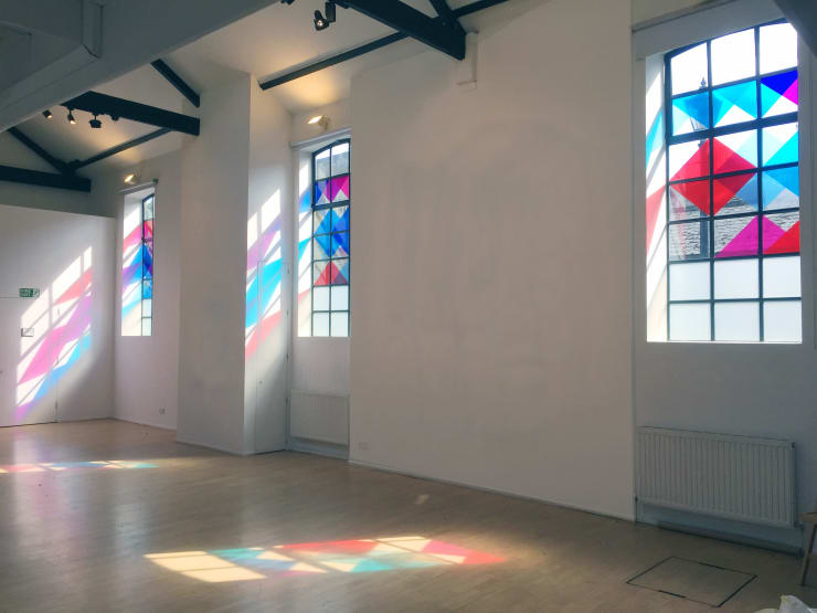 Fiona Grady was invited to create a site-responsive window installation that inhabits the windows of the Cello Factory and present a pair of her Movements screenprints.